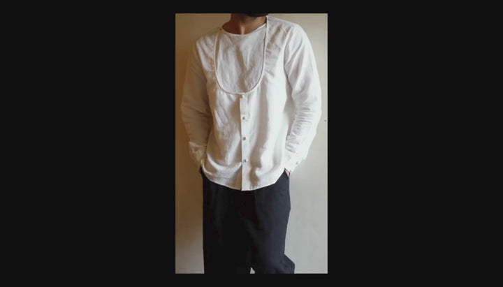 Coffee Co-Linen Men's Band Collar Shirt – Slim Fit