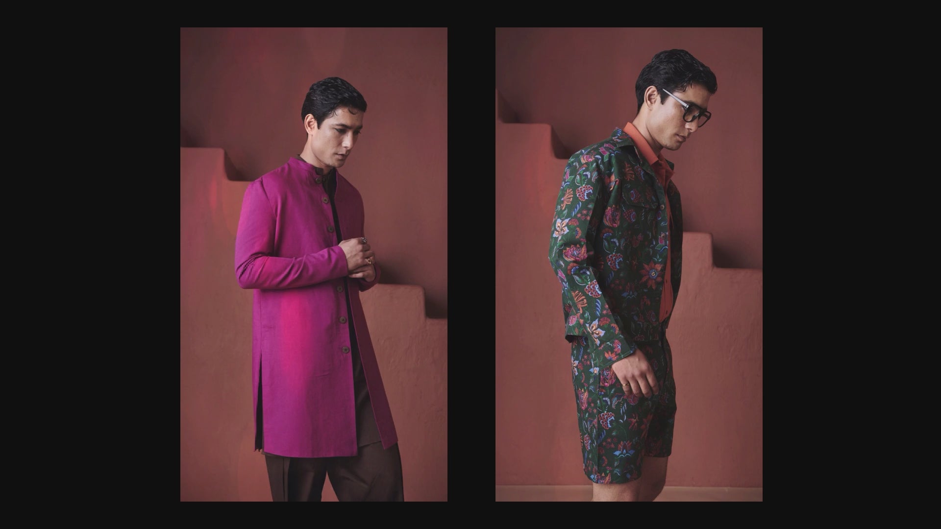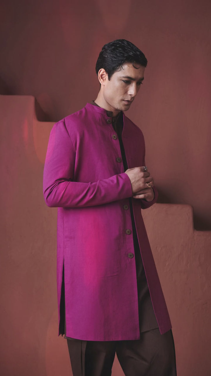 Brick Co-Linen Men's Pleated Yoke Kurta Set