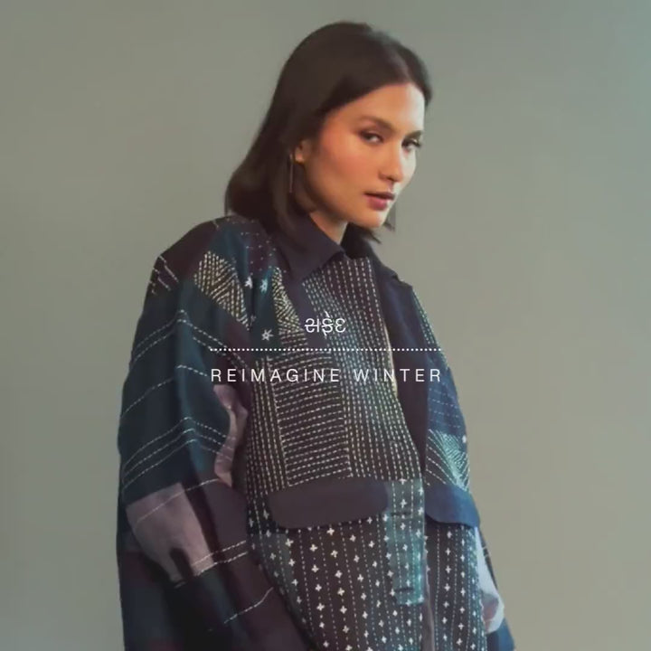 Patchwork Linen Kantha Oversized Jacket