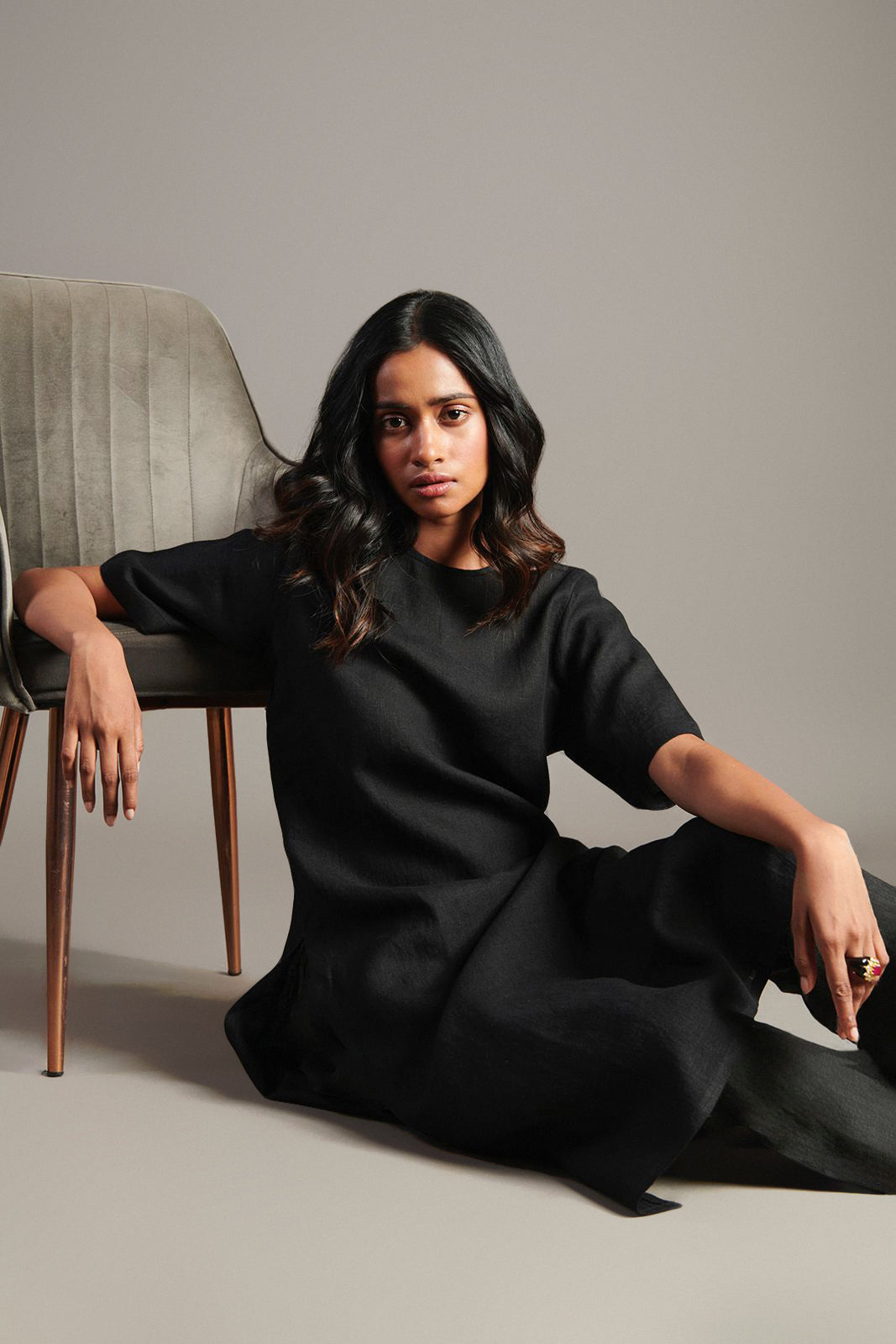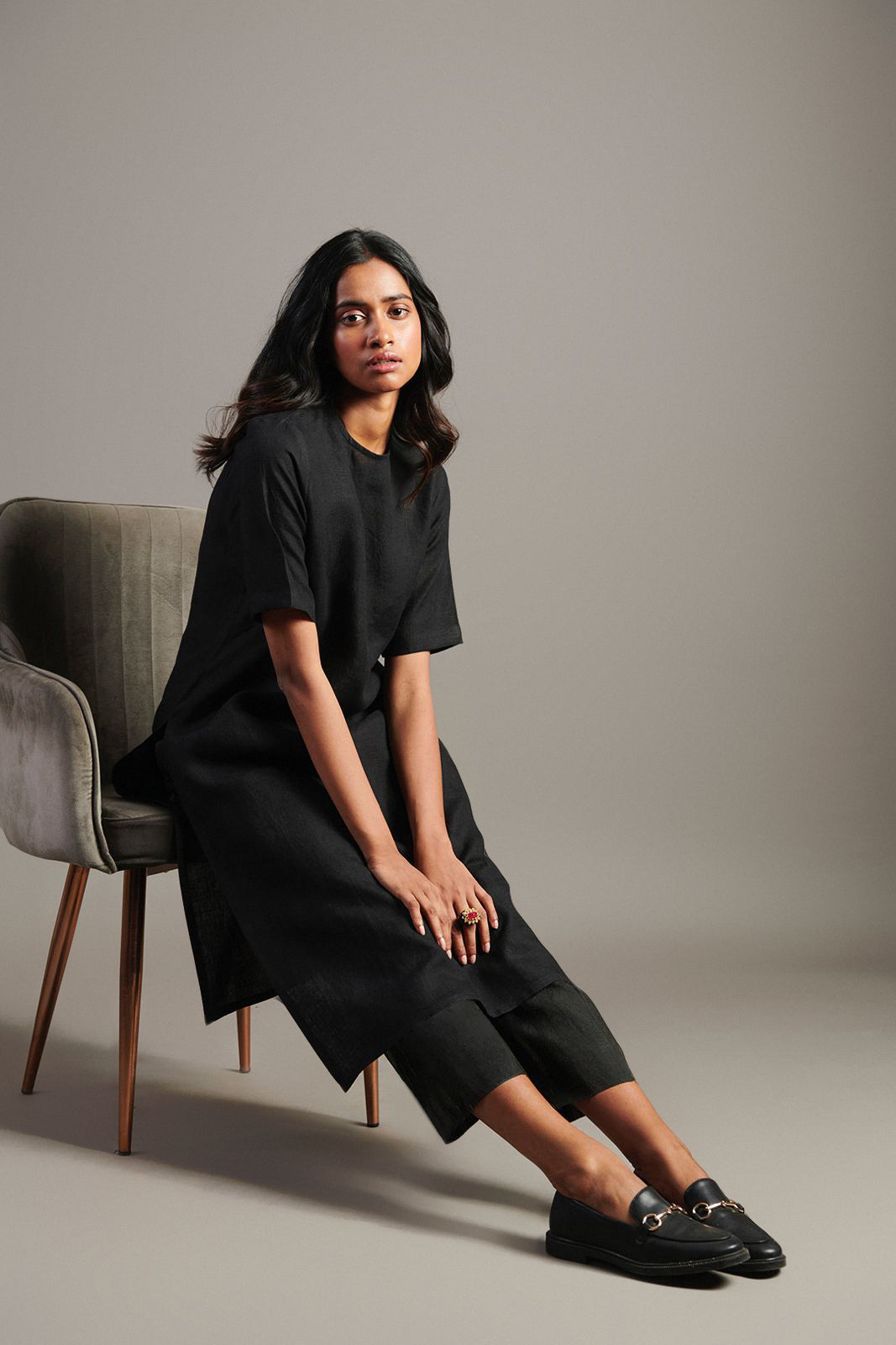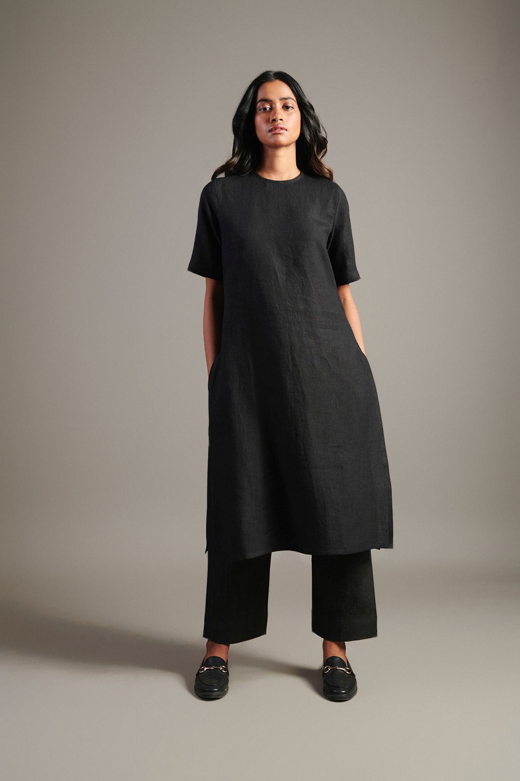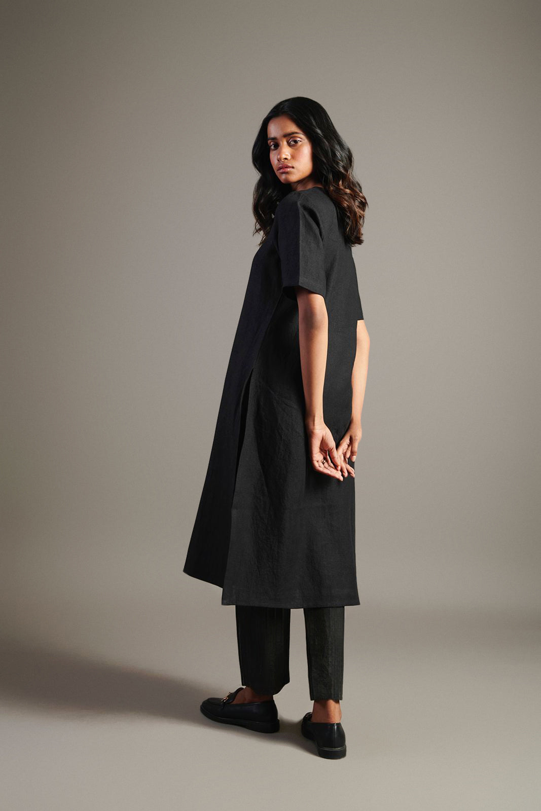 Kohl Linen Half Sleeves Kurta Set