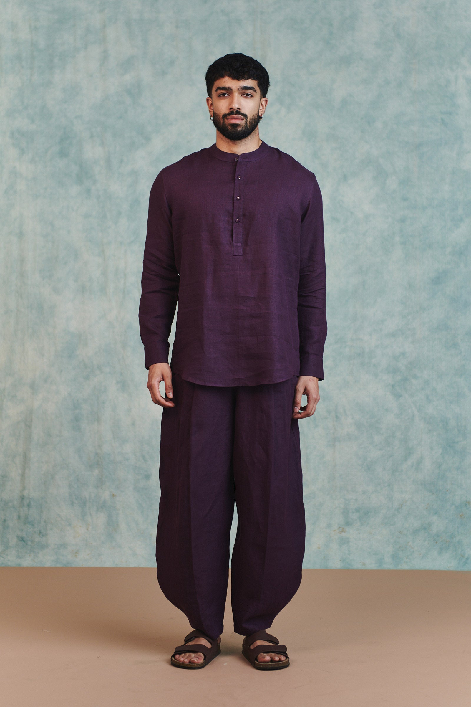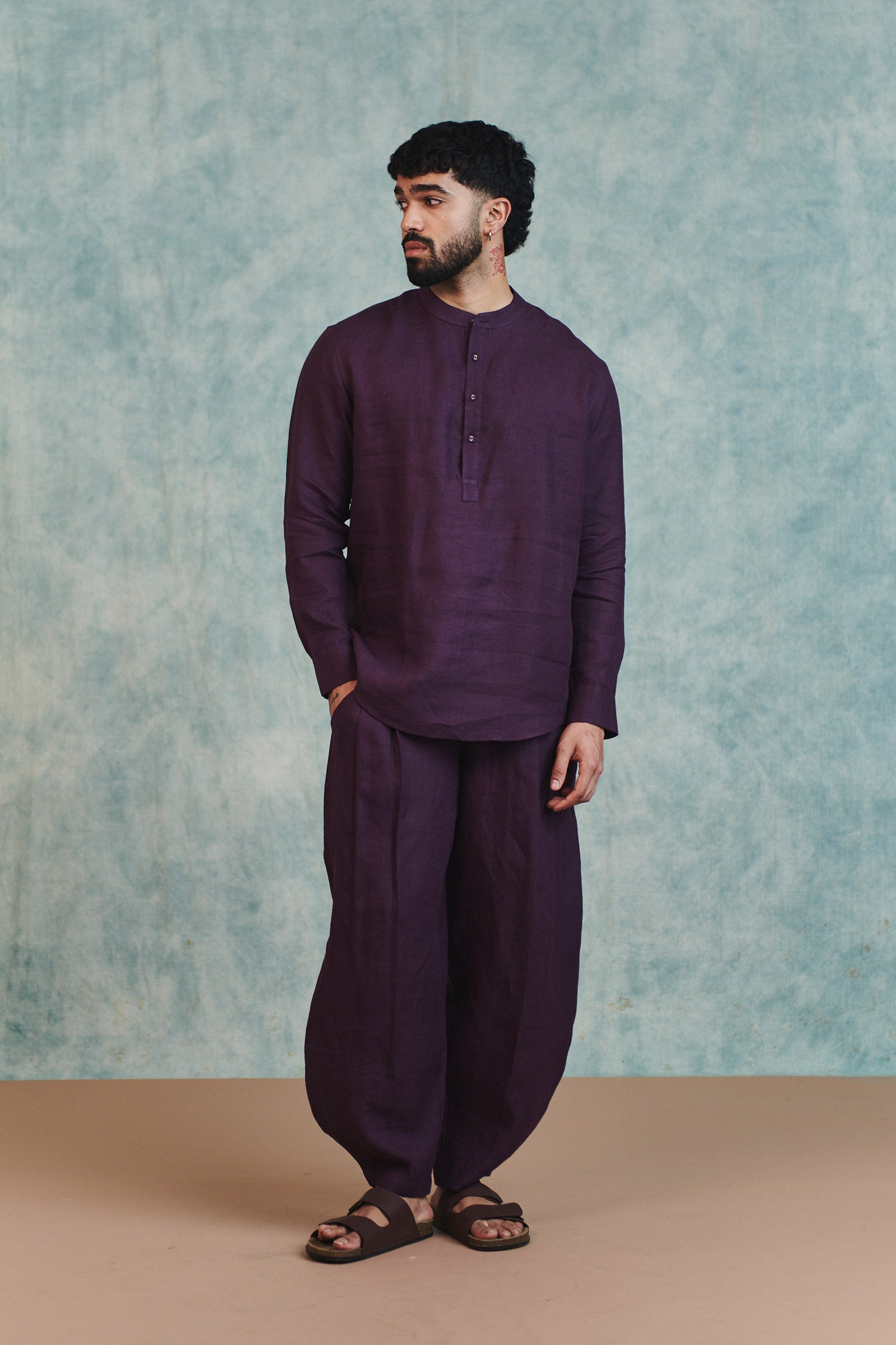 Plum Linen Men's Barrel Pants